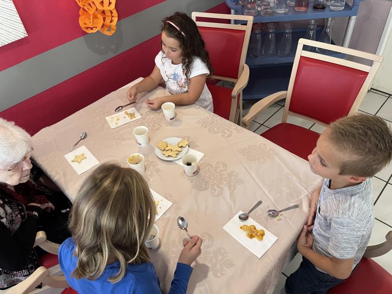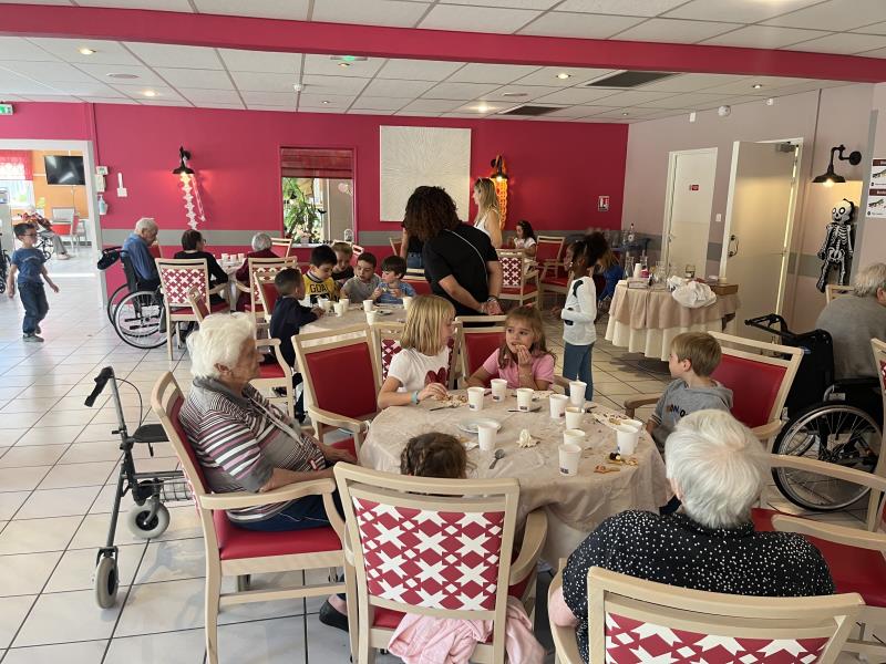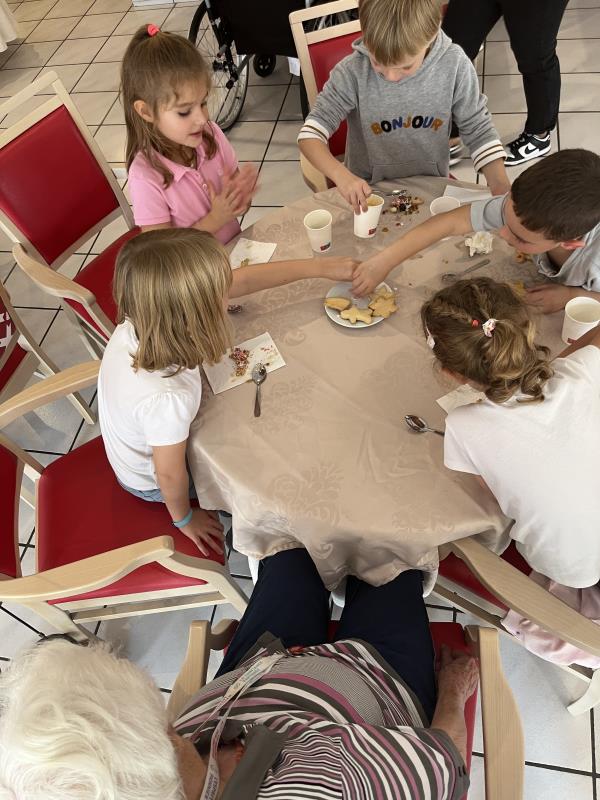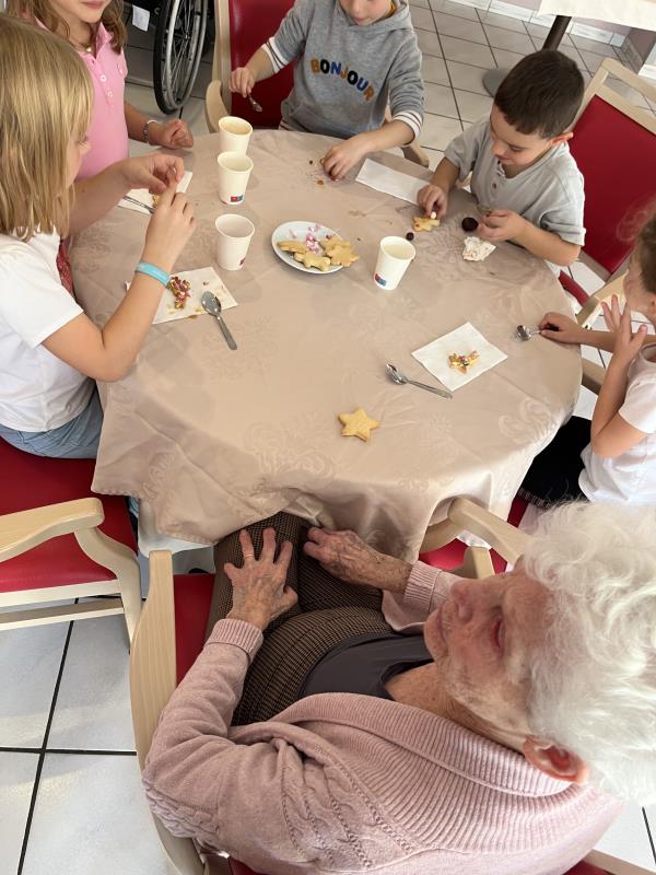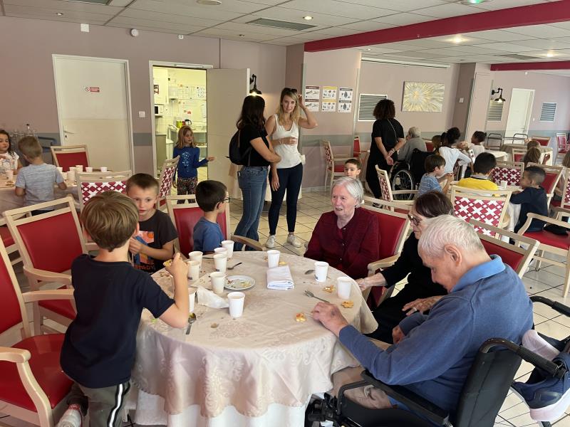 Mardi après, ça a été le tour de la classe de CP de précy de venir rendre visite aux résidents. Un grand moment de joie et de bonne humeur a été partagé entre les résidents et les enfants. De la joie, de la danse, des rires mais surtout de la gourmandise étaient présents. Rien de mieux que pour finir l'activité, un moment de récréation dans le parc. Enfants comme résidents sont impatients de se retrouver.